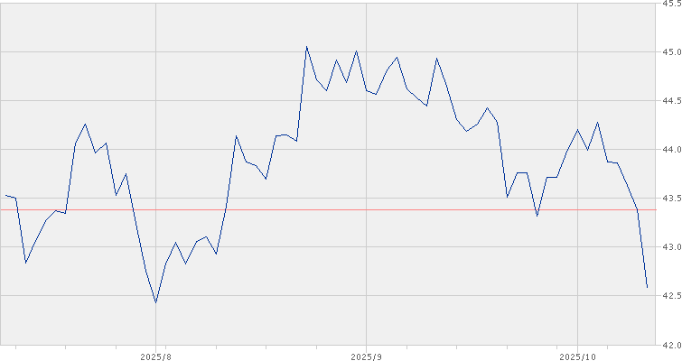 今週は、週後半にかけて下落圧力が強まり、最終的に42.6ドルまで下げました。