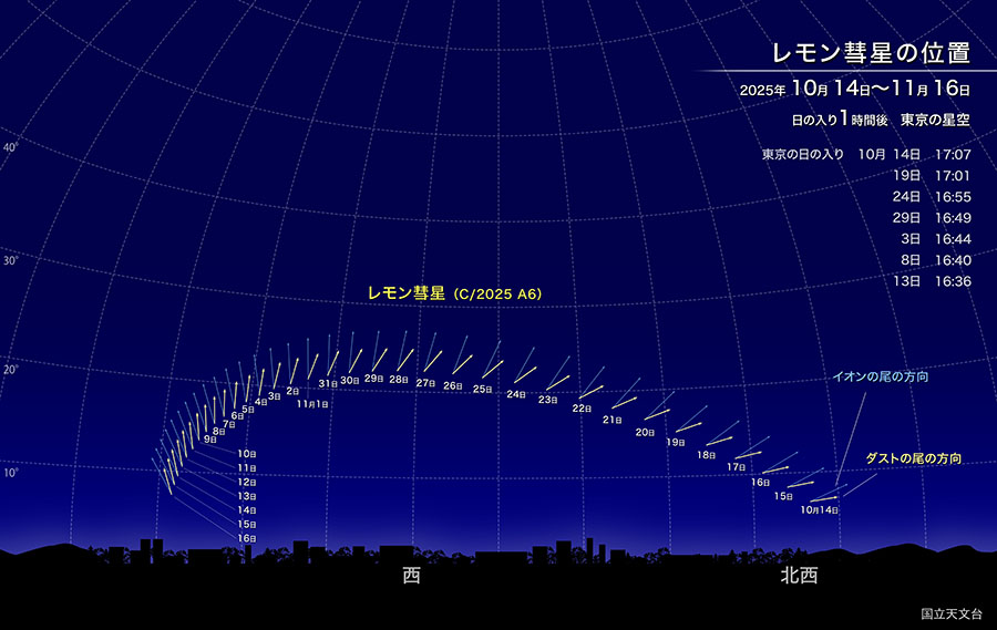この彗星は2025年1月にアメリカ・レモン山天文台で発見され、当初はそこまで明るくならないと考えられていましたが、夏頃から急速に増光し、10月から11月にかけては4〜5等級と、双眼鏡や条件の良い場所では肉眼でも観察できるほど明るくなっています。