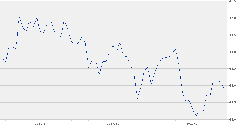 今週は、先週から少し値が上昇し、1口43ドル付近になっていました。