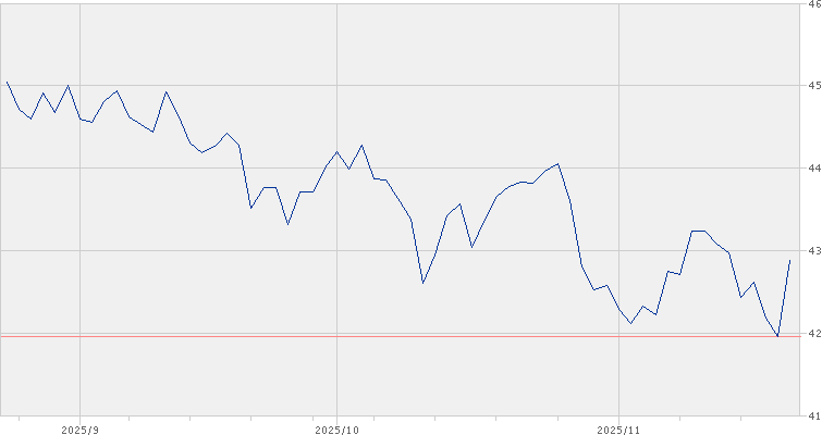 今週は、小幅な値動きではあるものの、42.75ドル付近まで上昇して終わっていました。