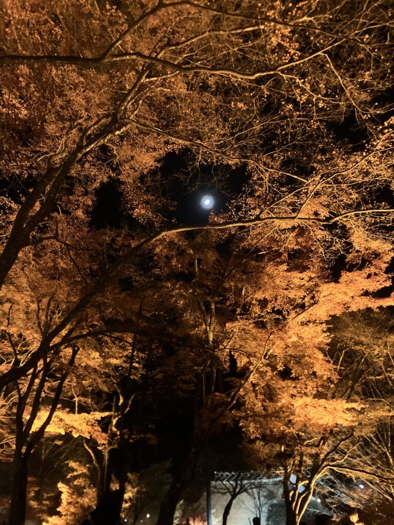 その夜は月も美しく、紅葉と月のコントラストが特に印象的でした。